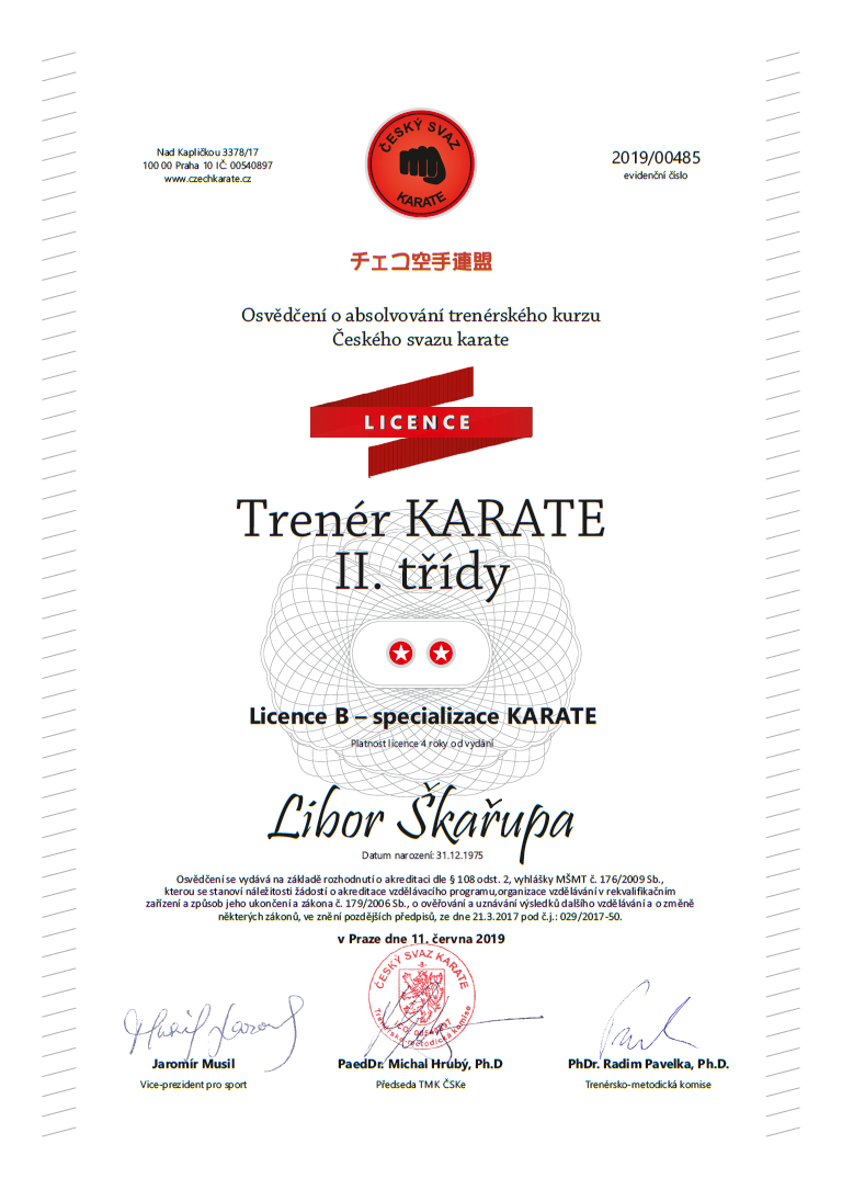 Trenéři akademie karate Olomouc Libor a Darina, úspěšně zakončili zkouškou na vyšší trenérskou licenci “B” na fakultě UPOL se specializací karate 😉