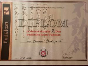 V pátek dne 15.12. v Praze, tenéři akademie karate Olomouc Libor Škařupa a Darina Škařupová složili náročné zkoušky a stali se držiteli 2. Dan, u zkušebního komisaře sensei Rachmy Soebajo 9. Dan, prezident ČFTKFS (Fudokan Shotokan) a prezident Českého svazu tradičního karate ITKF ČR.