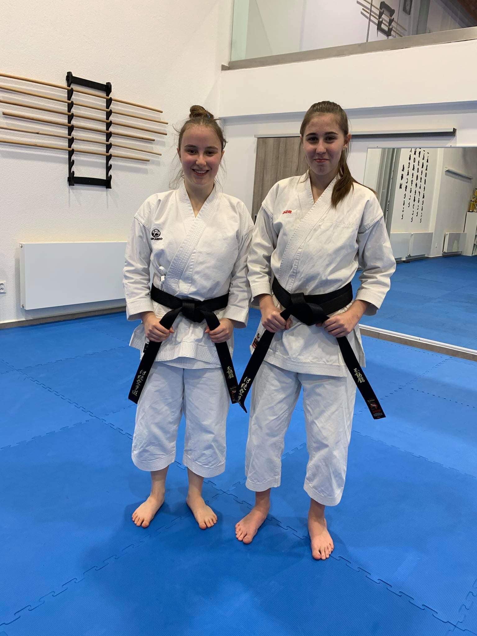 Po několika odkladech z důvodu omezení sportování, dlouhé a náročné přípravě složily úspěšně zkoušky na černý pásek Eliška Skřivánková 1. Dan a Adéla Leznová 1. Dan. V dojo si dnes převzaly své černé pásky. Od října 2020 se holky připravovaly on-line. Nyní, kdy je dovoleno trénovat 2+1 (dva sportovci a jeden trenér), s rozestupy a negativním testem, zkoušky dokončily. Gratulujeme!
